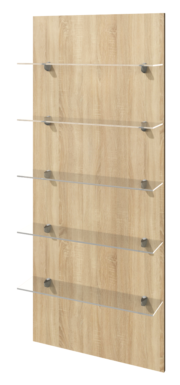 5 Stück Glasböden, Maß ca., (B/T/D) 84 x 17 x 0,8 cm, incl. Rückwandhalter (sind kundenseitig zu montieren)
